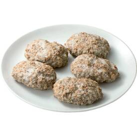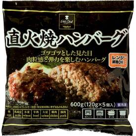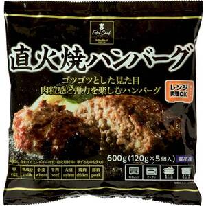 牛肉(豪州産)、豚肉、玉ねぎ等を使用。肉粒感と弾力のある噛み応えにこだわった直火焼ハンバーグです。レンジで加熱するだけの簡単調理です。煮込みハンバーグでもどうぞ。