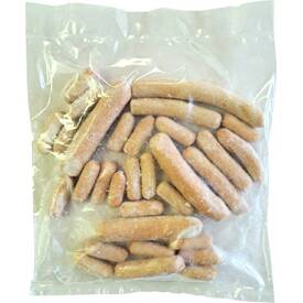 豚肉(国産)を使用。学校給食用につくった皮なしソーセージで、製造過程で出る「折れ、しわ、傷」等のわけあり品を集めました。大きさや太さにバラつきがあります。
