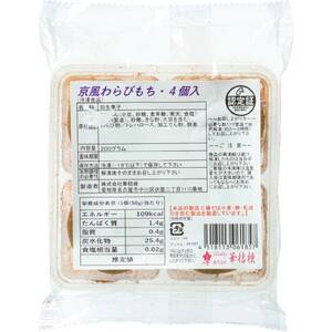 本わらび粉配合の生地で、甘さ控えめに炊いたこしあんを包みました。京風の深煎りのきな粉をまぶした風味豊かなわらびもちです。北海道産小豆を使用。室温で解凍してどうぞ。