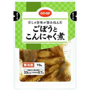 中国産ごぼうを使用。食感の良いごぼうとこんにゃくを、かつお節の旨みをいかした煮物に仕上げました。