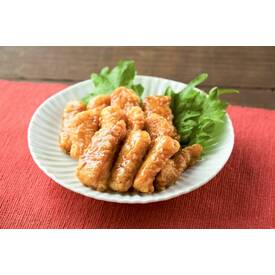 いか(ペルー又はチリ産)使用。食べやすいサイズにカットしたいかを天ぷらにし、天つゆだれをかけました。