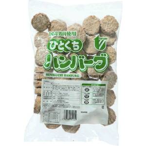 鶏肉(国産)、中国産たまねぎを使用。1個約20gのひと口タイプのハンバーグです。お弁当や夕飯のおかず等にどうぞ。
