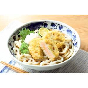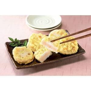 海老の旨みと水くわいのシャキシャキ食感が特徴の海老しんじょを、中国産れんこんではさみ、あおさ入りで彩りのよい天ぷら衣をつけて揚げました。天つゆで味付け済です。夕食のおかずはもちろん、お弁当やおつまみ、うどんの具などにどうぞ。