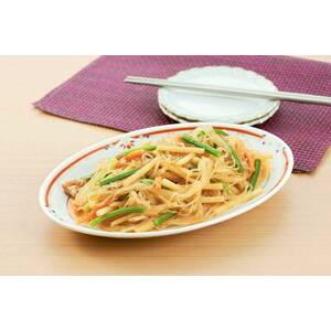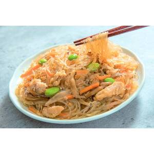 ごはんによくあう、甘辛く炒めたはるさめです。鶏肉、ごぼう、にんじん、しいたけ、えだまめ、ごま入り。レンジで温めるだけの簡単調理です。