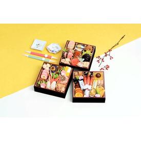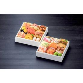 • 【壱の重】くるみ砂糖がけ・金ごま田作り・紅白かまぼこ・伊達巻・有頭海老・丹波篠山産黒豆・鶏肉二色巻・ゆず入り生酢・なると金時栗きんとん【弐の重】長崎県産ぶりの照焼・酢だこ・手まり湯葉・名古屋コーチンの肉団子・サーモントラウトローズ・昆布巻・たらこ煮・流星くらげ・本ズワイ蟹爪幽庵・味付数の子・蝦夷あわび煮【参の重】穴子八幡巻・ままかり黒酢漬・さつまいも甘煮・いか雲丹風味・カナダホッキ貝サラダ・味付いくら・厚焼玉子・れんこん煮・しいたけ煮・たたき牛蒡・たけのこ煮・寿高野煮・六角里芋煮・花形人参