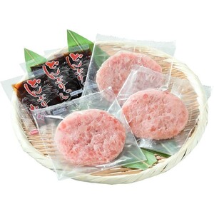 • きはだまぐろ、めばちまぐろを使用。旨みのあるまぐろの赤身のたたき身を、使いやすいようまるい形に加工しました。お子様でもお召しあがりいただけるような、まろやかな風味のタレ付きです。