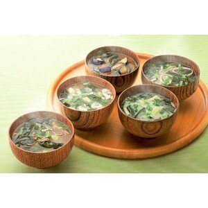 • 5種のみそと5種の具材を詰合せました。みそは仙台・信州合わせみそ、信州みそ、赤だしみそ、加賀・信州合わせみそ、米・麦合わせみその各6食。具材はあげなす、チンゲン菜、ねぎ、まいたけ、ワカメの各6食。お好みの組み合わせで、25通りのみそ汁が楽しめます。