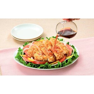 • 天玉の衣で包んだ若鶏ササミ(国産)に、程よい酸味の甘酢タレを添付しました。衣のサクサクとした食感が特徴です。