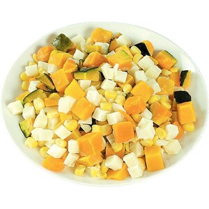 • 北海道産かぼちゃ40%・馬鈴しょ30%・とうもろこし30%をミックスしました。凍ったまま加熱調理してください。サラダやスープ、シチュー等にどうぞ。